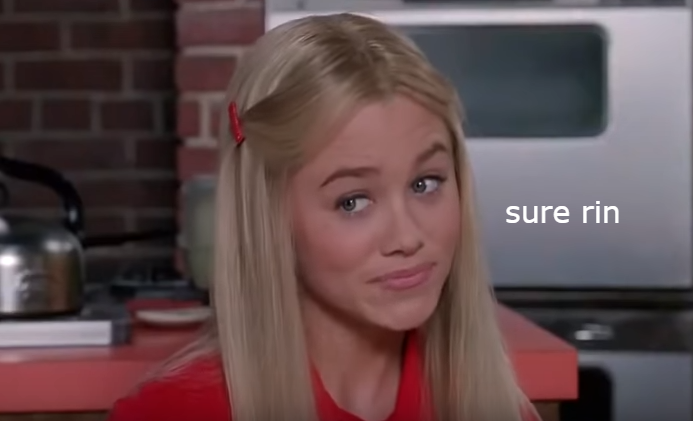 (Thankfully she catches Rin's brief confusion, because she'd been about to give him a look.)