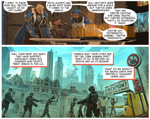 Hana continues to watch on in disbelief as the three continue their conversation, and this is surreal. She remembers watching news of the Uprising with her dad when she was twelve years old. She remembers when the Prime Minister declared that the situation was 'under control' and that 'no outside intervention will be needed' and she remembers that at the end of it all, it was still Overwatch that made the biggest impact.